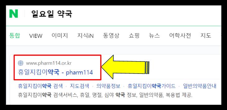 일요일 약국으로 검색을 하시면 휴일지킴이약국이 나오는데 바로 눌러주세요.