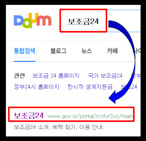 보조금24에서 나의 숨은 정부지원금을 찾아보려고 하는데요, 우선 다음에 보조금24를 입력하시고 홈페이지를 들어가 주시면 됩니다.